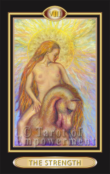 2024 is an 8 Universal Year. The Tarot cards that are represented by 8 are the Strength card and the Star card. The Strength card (shown here from the Tarot of Empowerment deck) calls on you to transcend your emotions and stand firmly with self-control. Trust that you have the internal power and fortitude to endure and conquer the challenges that may rise up before you. True Strength relies on gentleness and focus, not the use of force. Strength gives you confidence to meet internal or worldly impediments with grace, unencumbered by emotional reactions. The year 2024 is a year to show yourself kindness, compassion, patience, and understanding. For a full reading of the Strength card, click here.